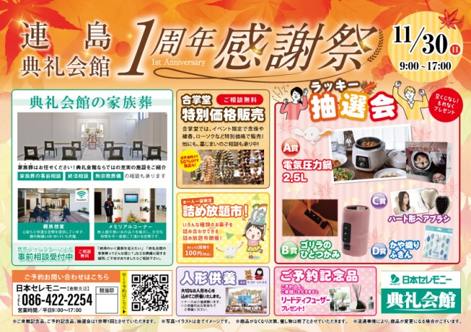 連島典礼会館(倉敷市連島3丁目2番13号 TEL 086-454-8870) にて