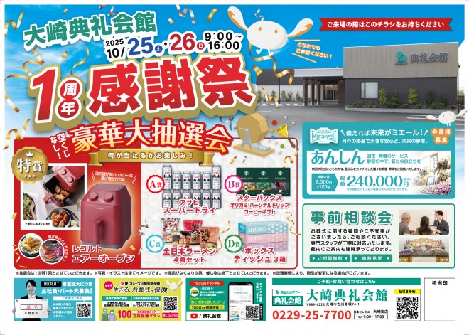 簡単1分お申込み10/25(土)・10/26(日) 9:00~16:00 大崎典礼会館(大崎市古川青塚74-1 TEL0229-87-4455) にて