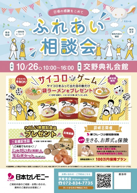 簡単1分お申込み10/26(日)10:00~16:00 交野典礼会館(交野市星田北四丁目31-15 TEL072-892-2779) にて