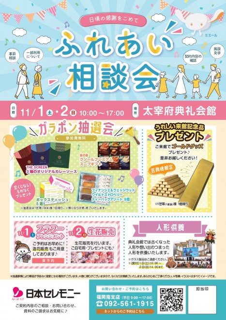 太宰府典礼会館(太宰府市大佐野1-4-10 TEL092-919-6123) にて『ふれあい相談会』を開催いたします。