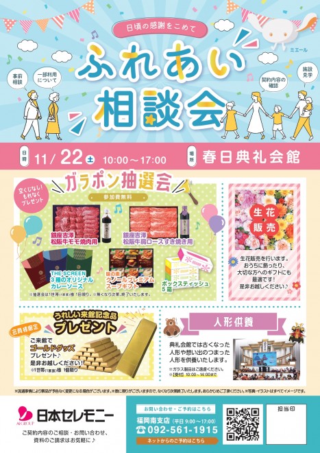 春日典礼会館(春日市平田台1丁目59番地 TEL092-558-1530) にて『ふれあい相談会』を開催いたします。