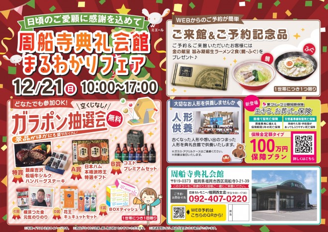 周船寺典礼会館(福岡市西区周船寺3-21-39 TEL092-806-0983) にて『まるわかりフェア』を開催いたします。