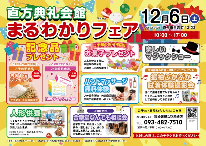 直方典礼会館(直方市日吉町12-32 TEL0949-52-6355) にて『まるわかりフェア』を開催いたします。