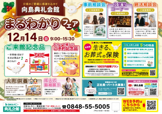 2025.12.14 (日)~2025.12.14 (日) 12/14(日)9:00~15:30 向島典礼会館(尾道市向島町5557-1 TEL.0848-29-9955) にて