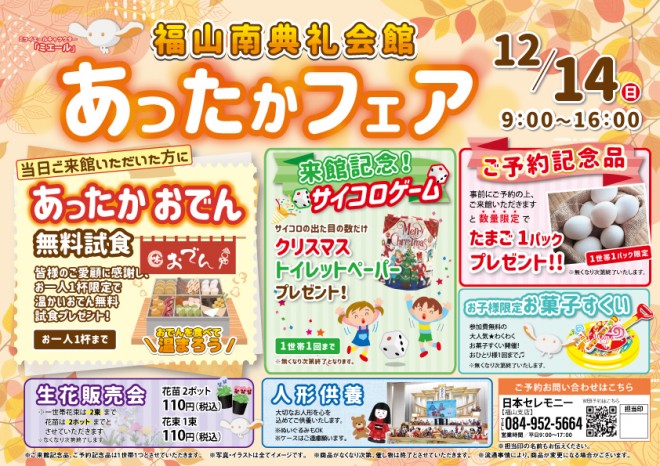 2025.12.14 (日)~2025.12.14 (日) 12/14(日)9:00~16:00 福山南典礼会館