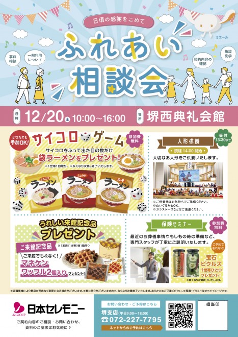 2025.12.20 (土)~2025.12.20 (土) 12/20(土)10:00~16:00 堺西典礼会館(堺市西区菱木2丁2412-1 TEL072-260-3116) にて