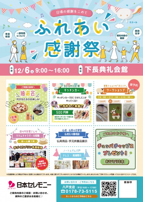 2025.12.06 (土)~2025.12.06 (土) 12/6(土)9:00~16:00 下長典礼会館(八戸市下長1丁目18-27 TEL0178-51-9977) にて
