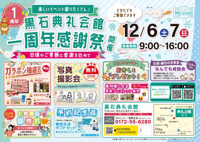 2025.12.06 (土)~2025.12.07 (日) 12/6(土)・7(日)9:00~16:00 黒石典礼会館(黒石市北美町3丁目60-1 TEL0172-88-8560) にて