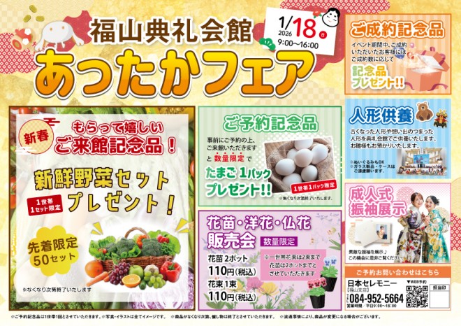 2026.01.18 (日)~2026.01.18 (日) 1/18(日)9:00~16:00 福山典礼会館