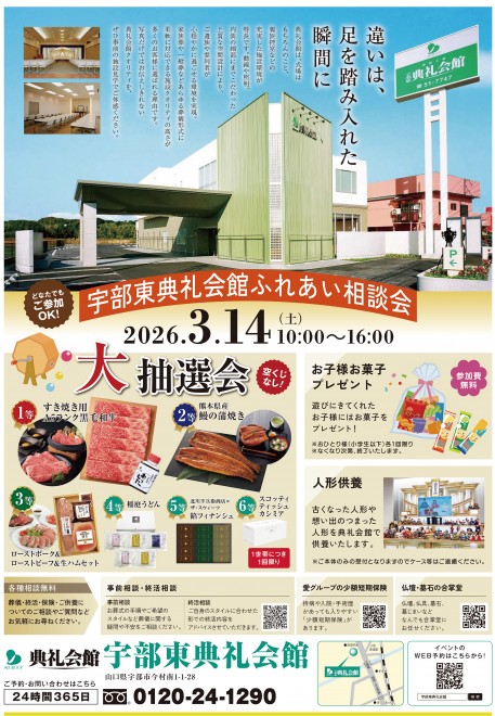 宇部東典礼会館(宇部市今村南1-1-28 TEL0836-51-7747) にて『ふれあい相談会』を開催いたします。