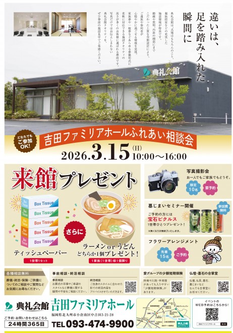 吉田ファミリアホール(福岡県北九州市小倉南区中吉田3-21-28 TEL093-474-9900) にて『ふれあい相談会』を開催いたします。