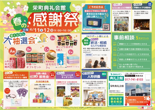 2026.04.11 (土)~2026.04.12 (日) 2026/4/11(土)・12(日)9:00~16:00 栄町典礼会館(青森市栄町1丁目6-4 TEL017-741-7131) にて