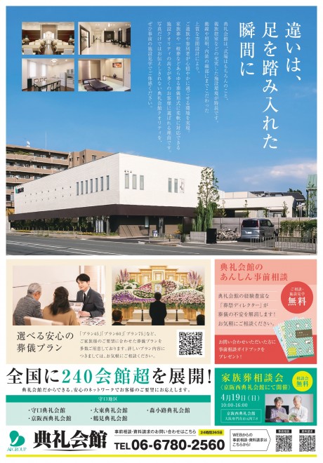 京阪西典礼会館(大阪府門真市元町7-8)にて 、 『家族葬相談会』 を開催いたします。