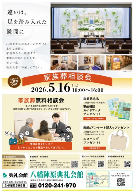2026.05.16 (土)~2026.05.16 (土) 5/16(土) 10:00~16:00 八幡陣原典礼会館にて